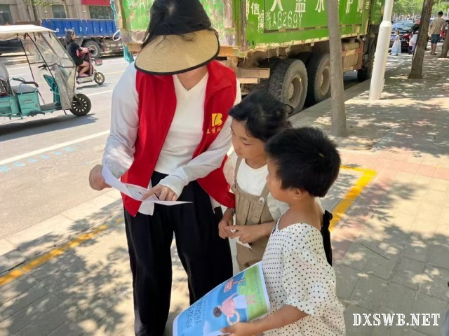 “小朋友,千万不能一个人去河边玩水哦,要是看到有人落水,也不要自己去拉,要大声喊大人来帮忙……”队员们耐心地向过往的孩子们讲解防溺水要点,结合真实案例提醒他们远离野外危险水域。同时,队员们还向家长们强调监护责任,建议家长陪同孩子前往正规泳池游泳,并做好安全防护措施。