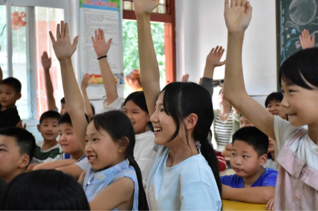 图为孩子们热情踊跃举手回答问题