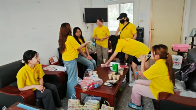 图为实践团在为孩子们打包精致的小礼品