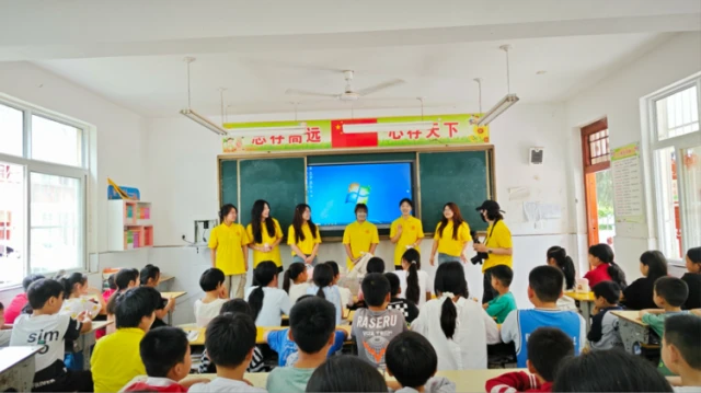 当夏日的蝉鸣漫过豫南的田野,示范区新店乡夏饷铺村的周营小学迎来了别样的生机。这里的孩子,眼神清澈却常带一丝沉默——他们是守着祖辈方言长大的留守儿童,普通话的生涩常成为他们连接广阔世界的无形藩篱。我们这支大学生实践团队,怀揣“推普助力乡村振兴”的使命,以语言为桥,以色彩为媒,开启了一次深度浸润。前期精密筹备,精准对接需求并强化团队培训;中期双轨并行:在小学,通过趣味语言课、经典诵读、主题演讲及多元兴趣活动,以“成长档案”追踪、微信群“语音打卡”建立长效陪伴,显著提升留守儿童普通话能力与文化自信;后期系统总结,凝练可复制的“语言浸润+美育赋能”模式,通过深度报道传播影响,寄送成果维系情感,致力于为留守儿童插上跨越方言藩篱的“声音翅膀”。