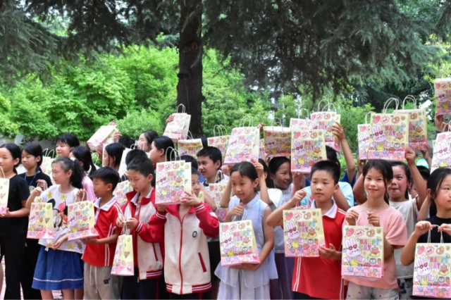 图为实践团为孩子们发放纪念小礼品