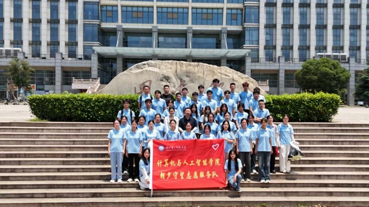 湖北第二师范学院计算机与人工智能学院“朝夕守望”志愿服务队全体队员在图书馆前准时集合。队伍在图书馆前的出征合影镜头定格了队员们青春洋溢的面孔,大家齐声喊出“以脚步丈量乡村大地,用知识点亮希望之光。三下乡,我们来啦!”,展现了服务队投身基