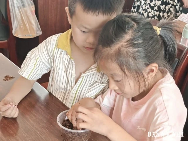 在老师的指导下,孩子们兴致勃勃地开始了自己的种植实践。他们小心翼翼地按照步骤操作,先铺土,再撒种,最后覆土并浇水。过程中,老师不断提醒大家注意种子的均匀分布和覆土的厚度,确保每一颗种子都有足够的生长空间。孩子们互相交流心得,有的还为自己的小花盆贴上标签,写上名字和种植日期,期待薄荷早日发芽。
