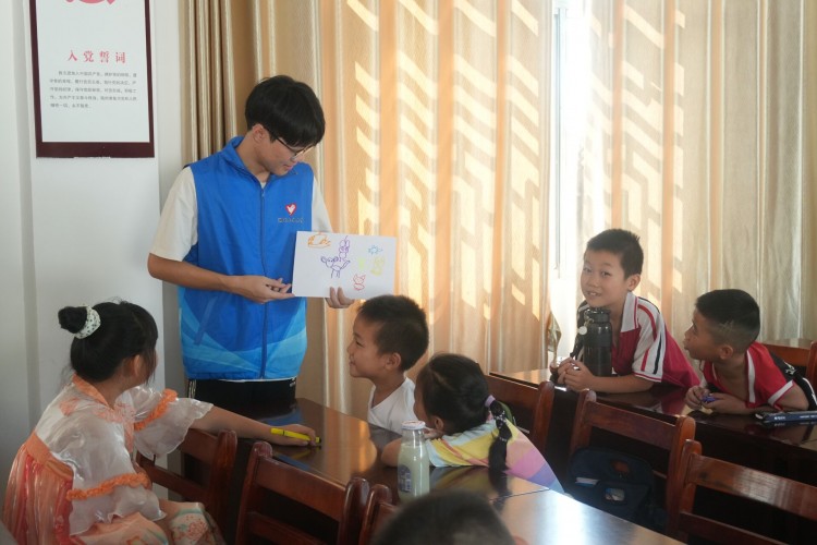 在红安县上新集镇兴安冲村的教室里,阳光透过窗户洒在课桌上,志愿者们亲切地进行了自我介绍,在孩子们期待的目光中介绍了本次爱心托管班的课程。看到仍有一些孩子胆怯害羞,志愿者们按计划开展了一些破冰小游戏。