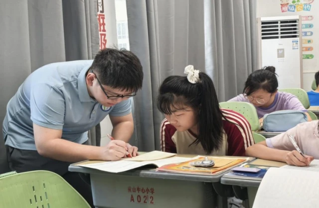 鄂州市华容区蒲团乡横山村社区横山中心小学内,由横山村社区联合湖北第二师范学院计算机与人工智能学院“朝夕守望志愿服务队”开展的“爱心托管班”正式开班,全村70余名儿童报名该活动,参与为期三周的七彩假期公益行动。志愿者们以饱满的热情投入工作,为乡村孩子们带去知识与关爱。