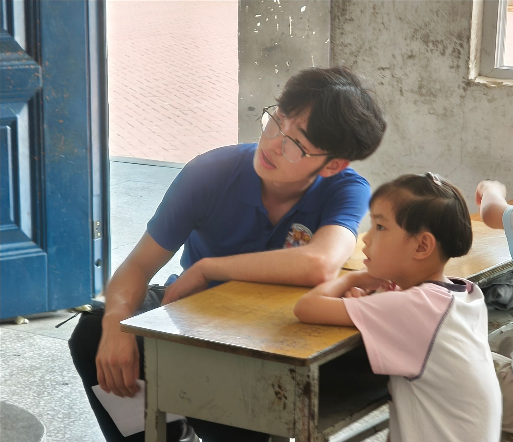 进入教学阶段后,团队依据前期调研掌握的村民语言情况,精心设计了一系列贴合乡村实际的课程。课堂上,队员们化身老师,从最基础的拼音字母教起,用采购来的拼音教具形象地展示声母、韵母的发音方法。孩子们瞪着好奇的眼睛,跟着老师一遍遍地认读,稚嫩的声音在教室里回荡。除了拼音教学,经典诵读课程也备受欢迎,队员们带领孩子们朗读《诗经》《唐诗宋词》中的经典篇目,这些篇目均为传承已久的优秀传统文化内容,在抑扬顿挫的诵读声中,让孩子们感受普通话的韵律之美,同时也领略传统文化的魅力,有助于培养孩子们的文化自信和民族自豪感。