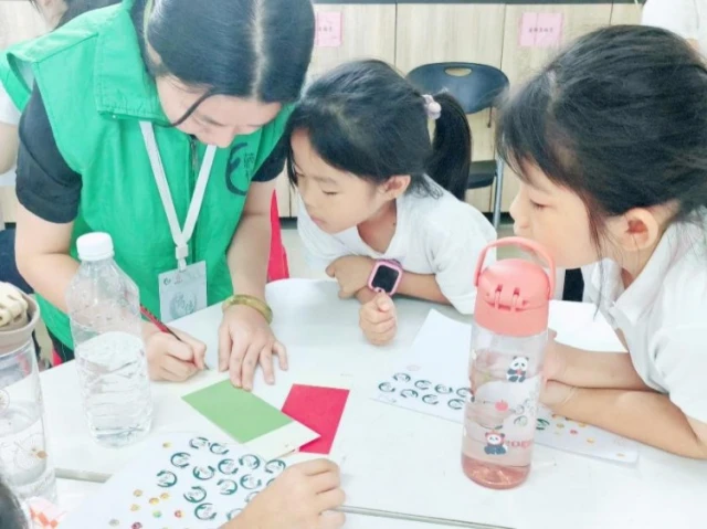 图为药传志愿服务队队员指导同学们制作沉香书签。通讯员 刘林炀 供图
