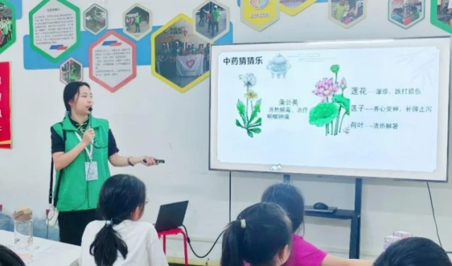 图为药传志愿服务队队员通过小游戏介绍不同中草药。通讯员 黄文正 供图