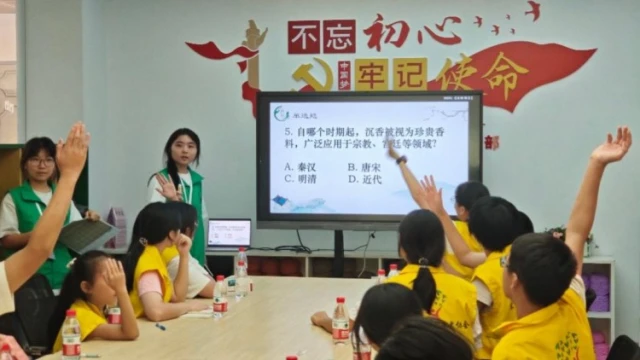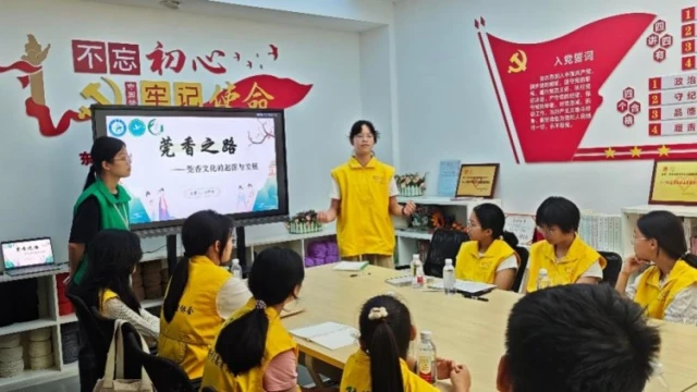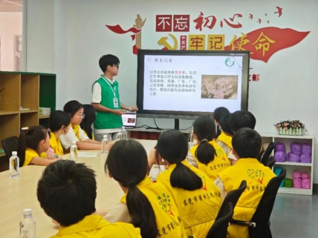 广东医科大学药传志愿服务队于2025年7月9日,以文化传承为核心,按活动对象分为两支队伍,一支队伍以中医药为主题的在大岭山博物馆开展义教活动,一支队伍面向东莞寮步镇志愿者开展沉香文化的学习课堂,共同培养莞香使者。今日的出行聚焦三大维度:溯源中医药千年智慧,解码其生命哲学;匠心传习,指导青少年手制沉香书签,体悟本草灵性与匠造精神;深耕本土,着力培育“莞香使者”,筑牢青少年对地方瑰宝的文化认同与守护之责。本次活动不仅仅是知识的传递,更是中医药“活态传承”的生动实践。药传志愿服务队的志愿者们以所学知识为犁,深耕莞香文化沃土,在青少年心中播撒岐黄火种,肩负起赓续国粹文脉、赋能乡土振兴的时代使命。(通讯员 郭可莹 黄文正 刘林炀)