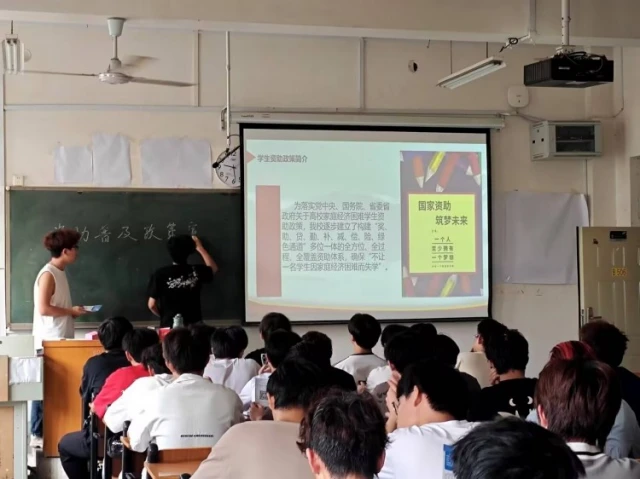 资助政策宣传:筑梦前行,温暖相伴校内宣讲:通俗易懂,答疑解惑走进班级,“材化聚力映朝阳,资助筑梦绘新篇”三下乡实践团开启了资助政策宣讲活动。成员们带着团务培训沉淀的严谨态度,将国家资助政策“拆解”成通俗易懂的内容。从助学贷款到奖助学金,他们清晰梳理了申请流程与要点,让同学们对资助政策有了更清晰的认识。