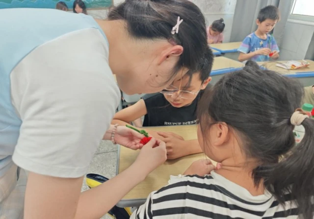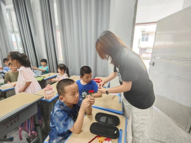活动过程中,志愿者老师们耐心地巡回指导,帮助孩子们解决制作过程中遇到的问题,鼓励他们大胆创新。孩子们也积极互动,教室里充满了欢声笑语,热闹非凡。