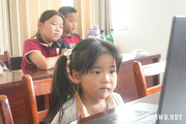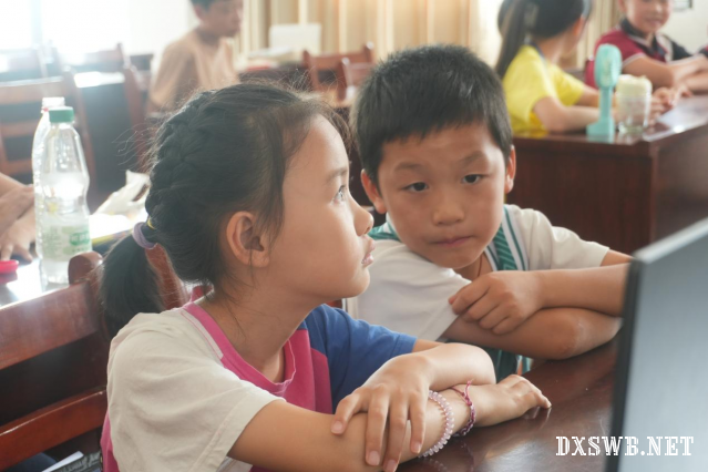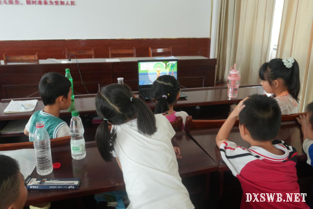 图为小朋友在观看防中暑安全小视频。湖北工业大学 杨思颖摄
