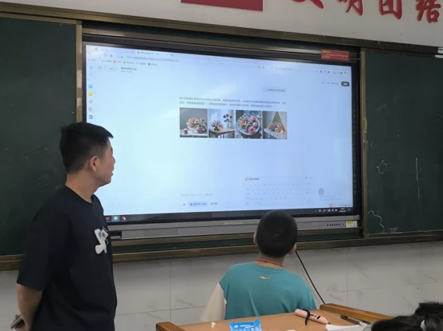课程尾声,杜老师精心安排了实践环节:他带领学生们体验PPT中“动手玩转AI工具”环节,让孩子们输入创意描述(如“珊瑚和玫瑰花”),利用AI绘画工具实时生成奇幻图片。当文字瞬间转化为画面时,孩子们惊叹连连,直观感受到了“AI魔法画笔”的神奇魅力。这次互动体验也生动展现了人工智能专业广阔的应用前景,正是学院参与教育部人工智能助推教师队伍建设试点项目等实践所致力探索的方向。