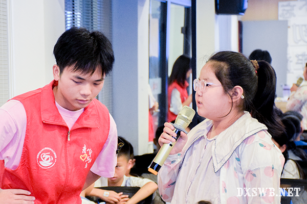 ▲志愿者谌诗玉带着小朋友们探索动植物世界的奥妙