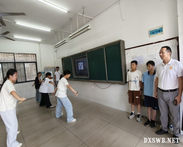 七月的黄冈,朝气蓬勃。清晨第一缕阳光洒进浠水县第二实验初级中学华桂校区,湖北师范大学历史文化学院“爱童行”实践队的队员们便轻叩宿舍门扉,温柔唤醒睡梦中的学子。孩子们踏着晨光开启新的一天,教室里的朗朗书声,传递着对知识的渴求和对未来的憧憬。实践队员们也步入课堂,美术、历史、军事技能、音乐、地理等学科依次展开,“爱童行”实践队的队员们以精心设计的课程为笔,以孩子们求知的目光为墨,在乡村教育的画卷上挥洒青春。
