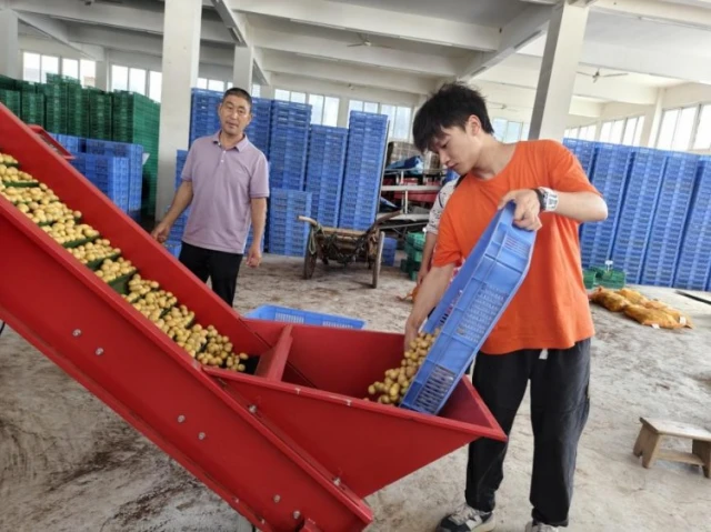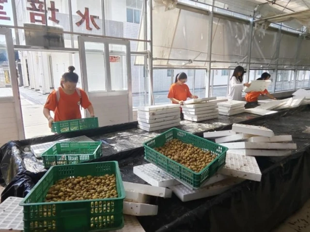 在种薯分选仓库,志愿者们俯身工作台,在专业指导下亲手参与马铃薯原原种的精细筛选。指尖轻拨,依据尺寸、形状与健康标准严谨分类,优质种薯被轻置入指定容器。随后,自动化分拣设备的流畅运转映入眼帘,其高效精准与传统手工形成鲜明对比。躬身实践间,师生们不仅掌握了种薯分级技能,更切身感受到现代农业科技对生产力的深刻变革。移步水培育苗快繁温室,他们轻巧采摘下水培土豆,亲历“无土生金”的现代农技奇观,对绿色高效脱毒种薯繁育模式有了直观认知。