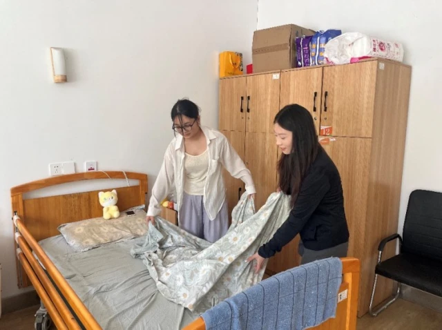 在每次老人们休息完起床后,实践团成员都会帮老人们整理床铺,让老人们有个舒适的居住环境。