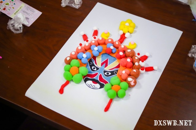 课堂上,孩子们热情高涨。在志愿者的指导下,他们运用色彩缤纷的粘土,揉捏塑形,精心制作脸谱作品。从勾勒轮廓到细致粘贴装饰,一个个传统脸谱形象在灵巧的指尖下于粘土中“活”了起来。孩子们沉浸其中,深刻感受着非遗的独特魅力,文化传承的种子悄然播下。
