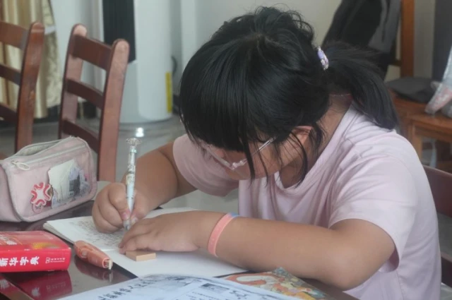 图为小朋友在认真记笔记。湖北工业大学 杨思颖摄