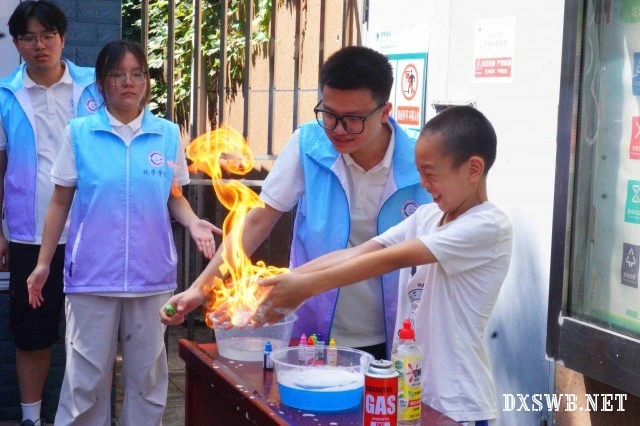 当“火山熔岩”实验中,橙红色泡沫如岩浆般奔涌而出,当“火焰掌”上黄色火苗随手掌起落而舞动,诠释着能量转化的科学密码,孩子们眼中的光芒比火焰更亮,那是对科学最纯粹的向往。