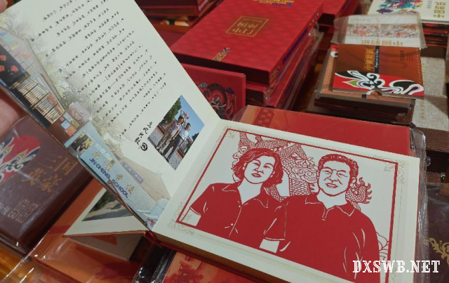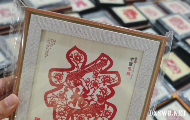 在刀刻车间,工人们手持刻刀在红纸上精准游走,数百张剪纸整齐排列,展现出规模化生产中的技艺坚守。晕染车间的色彩搭配让成员们驻足,传承人赵凤梅介绍,蔚县剪纸的染色工艺采用矿物颜料,历经数十道工序才能呈现出鲜亮持久的效果,这一独特技法使其在众多剪纸流派中独树一帜。企业创新成果展上,融合现代审美的剪纸衍生品令人耳目一新。从手机壳、卫衣到装饰画,传统纹样与现代生活用品的结合,展现了剪纸艺术“破圈”的可能。