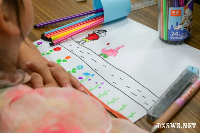 图为小朋友的作画内容 湖北工业大学 刘馨怡摄