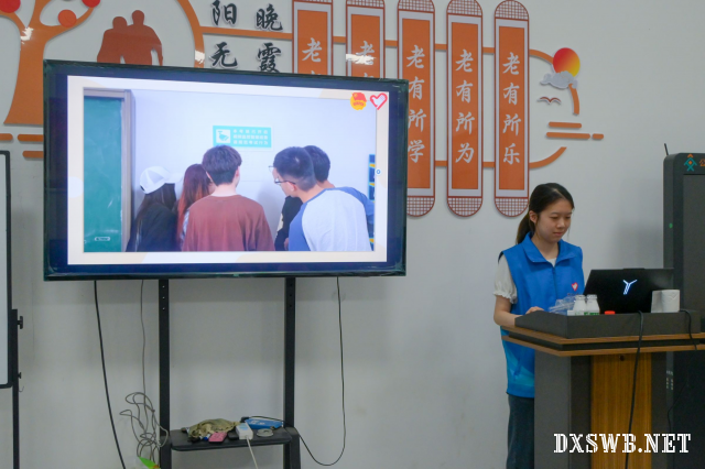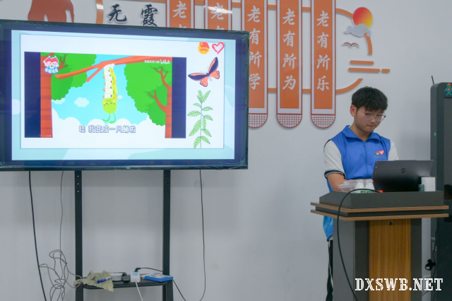 (图为志愿者在播放科普视频 湖北工业大学 刘馨怡 摄)