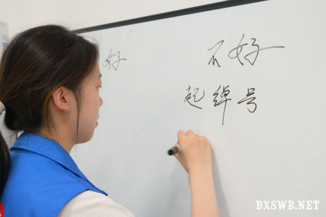 (图为志愿者在白板上列举冷暴力行为 湖北工业大学 徐亮 摄)