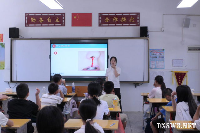 (通讯员 许海微 彭璟怡 陈琼芝)7月15日上午,为增强学生们的急救意识、提升应急能力。湖南师范大学树达学院教师教育系“燃情盛夏”队在良田学校开展开展急救培训课程。支教组成员彭晶晶担任主讲人。