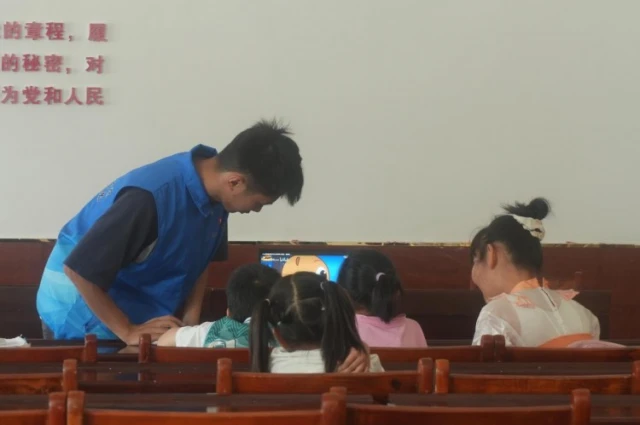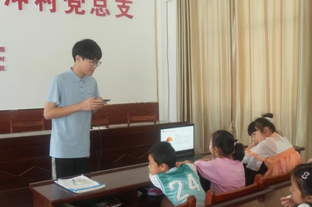 图为湖北工业大学志愿者在授课。湖北工业大学 杨思颖摄