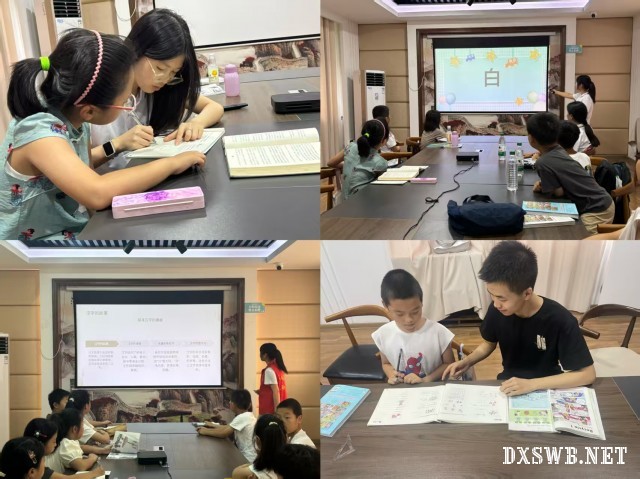 实践团成员先行走进当地朗川书屋,与馆长对接,了解学生语文学习痛点和兴趣点,接着布置出兼具互动性与文化氛围的活动现场空间,摆放经典名著、文具等,营造浓厚语文学习氛围。随后开展“看字说颜色”趣味互动,锻炼孩子们反应能力,也让他们体会文字与色彩组合的奇妙趣味。之后开启名著精读课程,以《小王子》为载体,借精美PPT剖析作品中纯真童心、情感羁绊的呈现,引领孩子触摸“守护纯真、拥抱未知”的深刻命题,让经典阅读摆脱晦涩,化作心灵滋养。最后开展“探索语文的奇妙世界”主题分享,从汉字演变到诗词韵味,用“诗词接龙”激活积累,借故事演绎解析章法,带孩子们遍历语文疆域的辽阔深邃。活动期间,有三名原本在书屋一楼自己看书的初中生,被楼上教授小朋友课程的场景吸引,觉得十分有趣,便上楼参观。课程结束后,他们自发留下来,协助实践团成员辅导孩子们写作业,成为支教活动中意外又温暖的助力。