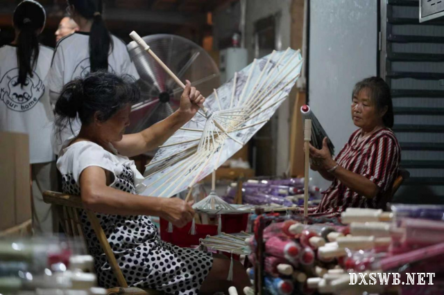 图为调研人员来到油纸伞制作工坊。郑听芩供图