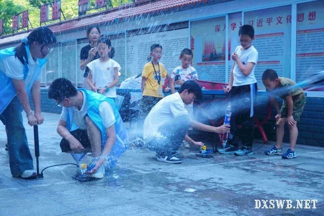 实践团成员以生动有趣的方式,深入浅出的讲解水火箭背后的科学原理,从作用力与反作用力的牛顿第三定律,到气压与动力的关系,并结合生活中汽车与气球的例子,让孩子们轻松理解复杂的科学概念。