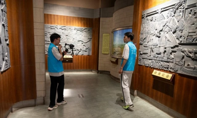 图为实践团成员介绍主题厅。郭力宁 供图