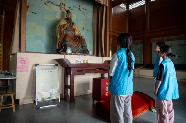 图为实践团成员瞻仰管仲像。郭力宁 供图