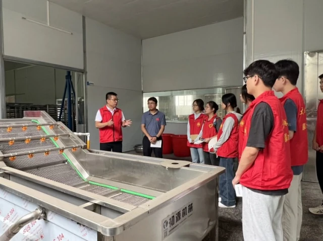 在当地驻村第一书记李鑫带领下,实践团走进永富村雪梨干加工厂,实地考察雪梨干加工厂生产线运营,在李书记细致讲解下,团队成员系统了解了村集体经济雪梨干加工厂的建设历程、雪梨干制作流程及当前销售状况,期间与驻村李鑫书记展开深度座谈,以创新理念和开拓思维为雪梨干加工业发展提供智慧支持。