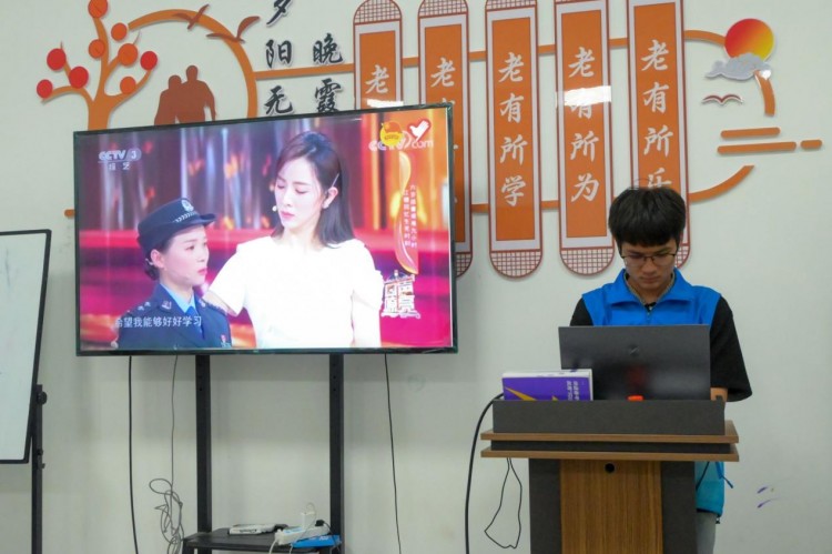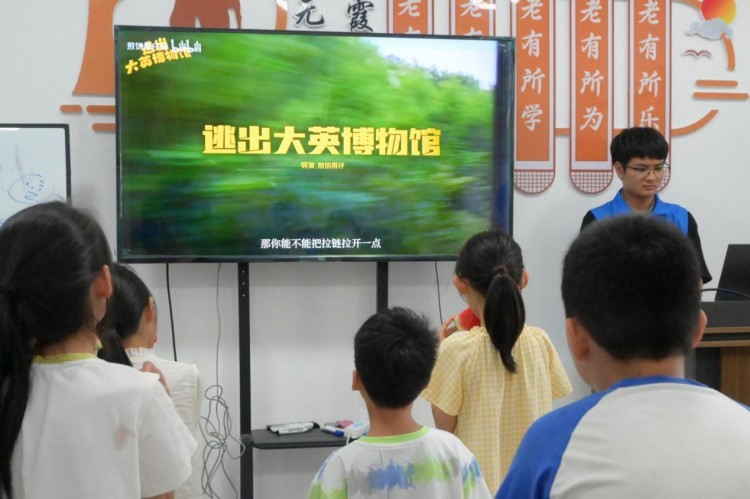(图为湖北工业大学志愿者在为小朋友们播放视频。湖北工业大学 王世成 摄)