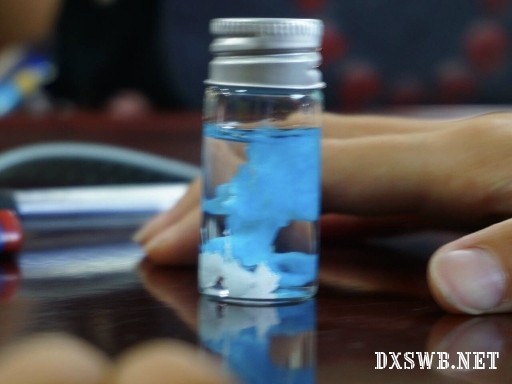 讲解结束后,队员们现场演示实验:蓝色沉淀在溶液中缓缓绽放,白色沉淀在底部逐渐堆积,孩子们眼中瞬间燃起好奇的光芒,跃跃欲试。在队员一对一指导下,孩子们小心翼翼地操作着——有的屏住呼吸控制粉末用量,有的睁大眼睛观察沉淀变化。当自己的玻璃瓶中浮现出独一无二的“海底世界”时,稚嫩的欢呼声响彻课堂。