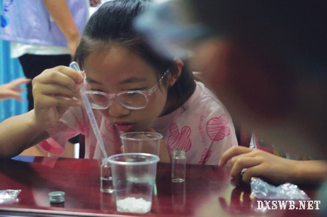 图为孩子们亲手操作“蔚蓝海底”实验 黎桂芳 摄