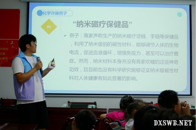 现场,志愿者结合专业知识,一一拆解典型套路:“比如宣称‘纳米磁疗项链能抗癌’,其实纳米材料根本没有这种神奇功效;还有说‘特殊试剂能让石头变黄金’,不过是利用了简单的颜色反应造假。”专业的解析让居民恍然大悟:“原来这些‘高科技’都是唬人的!”