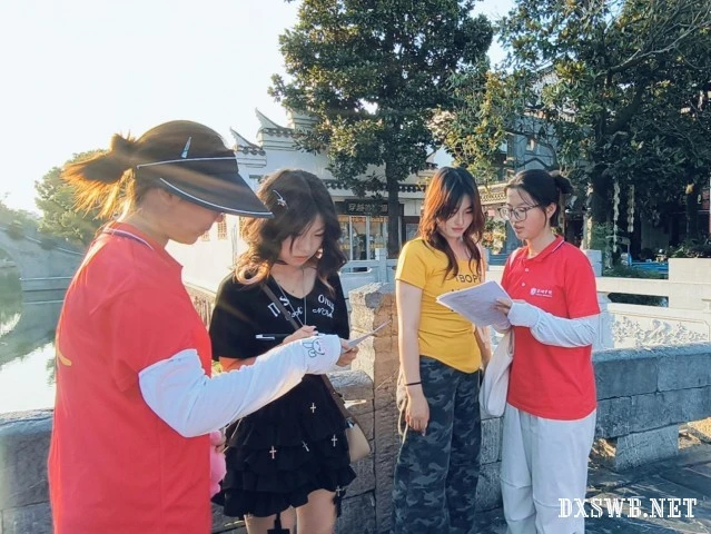 实践团采用“定点+走访”模式,通过在古镇人流密集区设立展台,分组走访商户与游客等方式,重点围绕公众环保法律认知、古镇生态现状和相关政策落实情况、以及改进意见和建议等内容进行问卷调研。活动中,团队成员耐心引导群众填写问卷,主动询问他们在日常生活中遇到的环境问题,为后续普法和撰写调研报告积累一手数据,助力将“民意温度”转化为“政策力度”。