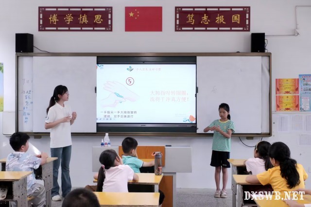 庞倍围绕洗手和刷牙两大内容,通过播放动画短片展示正确步骤、分组进行小游戏等互动形式,让学生在趣味氛围中学习七步洗手法和科学刷牙要点,引导学生们在实践中养成良好卫生习惯,加深对健康生活的理解。