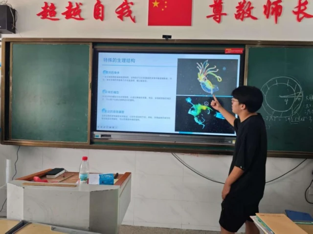 课堂上,幽蓝深邃的海洋画卷在屏幕上展开:头顶发光“灯笼”伺机捕猎的鮟鱇鱼、随波漂浮如透明丝绦的管水母、用灵巧触须传递信息的巨型章鱼……这些奇异的生命形态瞬间抓住了孩子们的目光。志愿者老师结合生动的画面,深入浅出地讲解了深海严酷的生存环境——永恒的黑暗、接近冰点的低温、数百倍于地面的恐怖水压。然而,画面中蓬勃的生命力也清晰地传递出一个信息:这片常人眼中的“生命禁区”,实则是地球上一处独特而壮丽的“生命乐园”。