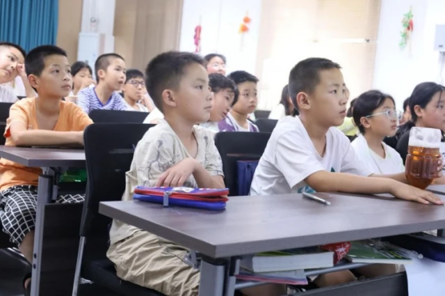 图为小朋友们正在认真听志愿者的讲课。湖北工业大学 李汉星摄