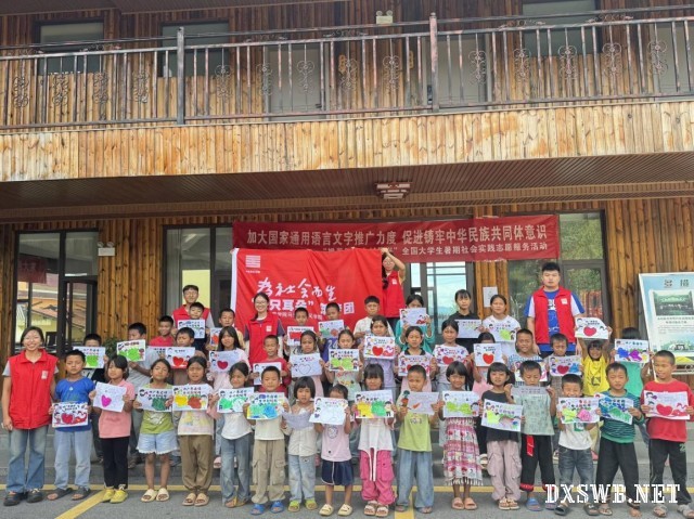 图片内容为实践团成员与各位小朋友推普海报合照。 施琴供图