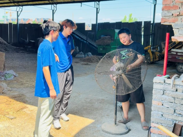 抵达后,成员兵分几路在关键点位布置采样点,聚焦通风口、密集区、粪便堆放区等重点区域。团队成员们手持检测仪穿梭棚舍,在不同点位、高度检测并记录气体浓度;尽管粪便堆放区异味刺鼻,团队成员们仍反复测量核对数据。水样采集聚焦水源入口、污水排放口,实践团队严格按流程操作,确保样本准确。