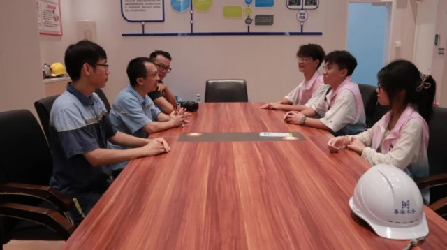 图为团队队员与工作人员围坐会议桌交流(黄悦涵供图)