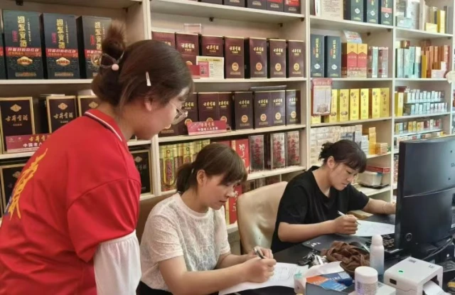 图为超市商户填写环保法实施情况问卷。牛玉婷 供图