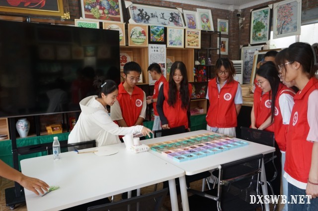 随后,实践团成员参观了产品展览室。展柜中,一件件精美的手工艺品令人眼前一亮:做工精细的雕刻产品、造型别致的陶艺摆件、细致精巧的串珠饰品……这些作品均由憨兜家园的成员亲手设计与制作。从构思到成品,他们付出了远超常人的耐心与努力,每一件工艺品都凝聚着他们的匠心与智慧。工作人员表示,手工制作不仅为残障群体提供了技能培训的平台,更让他们通过劳动实现了自我价值,增强了生活的自信心。