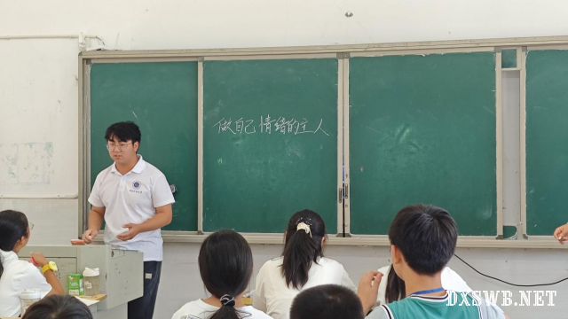 图为湖北师范大学历史文化学院“爱童行”实践队成员吕鑫给学生教授心理课。(通讯员邓雯摄)